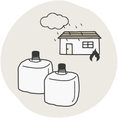 お客様が被災された際に、お水ボトル2本を無償でご支援させていただきます。